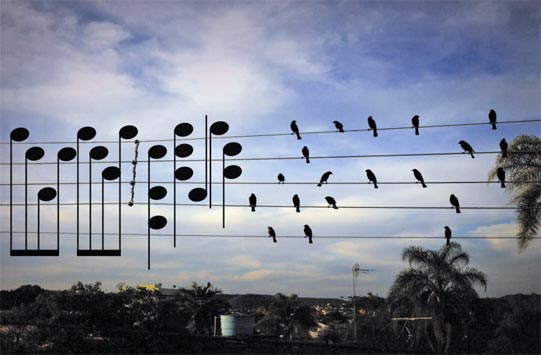 “Lendo o jornal de manhã me deparei com uma foto de pássaros nos fios. Recortei a foto e decidi compor uma música, usando a exata posição dos pássaros como notas. Pura curiosidade em ouvir que melodia aqueles pássaros estariam criando. Esse trabalho foi feito sobre a foto original, publicada num dos maiores jornais brasileiros “O Estado de São Paulo” em 27/ago/2009, e clicada por Paulo Pinto. (nota: eu apenas apaguei os pássaros para o efeito no fínal, mas não mudei suas posições)”.