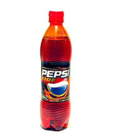 Pepsi Fire – Uma Pepsi vermelha sabor canela, vendida apenas na Malásia, Filipinas, Guam, Singapura, Tailândia e México. Muito picante, daí o “fire”!