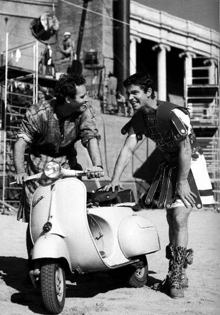 Essa achei o máximo, o Charlton Heston num intervalo das filmagens de “Ben Hur”, prestes a sair passeando em algo que não era uma biga!