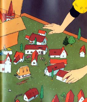 ZOOM é um livro só de imagens que, pouco a pouco, vão dando uma visão mais ampla do mesmo contexto como se estivessemos a reduzir o zoom. É muito interessante ver a integração de uma parte da imagem num conjunto que vai passando a ser cada vez menos importante à medida que fazemos o recuo do zoom. E nos faz pensar que é preciso ampliar a mente, a visão, e tomar consciência de que, mesmo que tudo pareça tão grande, sempre existe algo maior…