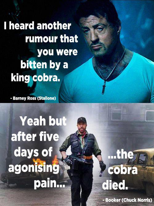 “É… Mas depois de cinco dias de dor agonizante… A cobra morreu” – Booker (Chuck Norris)