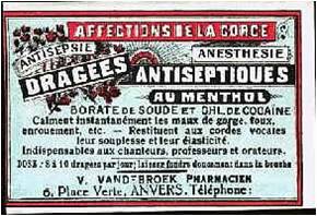 Estes tabletes de cocaína eram “indispensáveis para os cantores, professores e oradores”. Eles também aquietavam a dor de garganta e davam um efeito “animador” para que estes profissionais atingissem o máximo de sua performance.