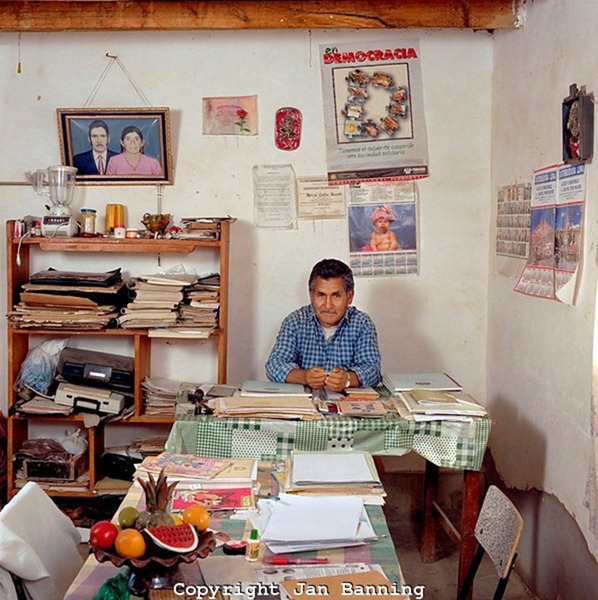 Seria esse o título em português do livro que o fotógrafo holandês Jan Banning acaba de lançar. Ele viajou por vários países e registrou fotos dos servidores públicos locais sentados atrás de suas mesas. O resultado foi um olhar fascinante sobre a cultura, os rituais e os símbolos de cada administração pública.