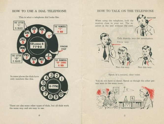 Era uma supermega tecnologia, um avanço gigantesco para a época! Mas as pessoas tinham que aprender a usar essa inovação, o telefone com disco, e então milhares de folhetos foram distribuídos, ensinando como fazer: