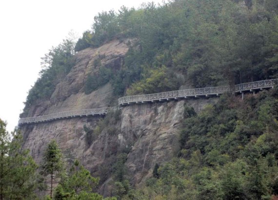 Milhares de metros acima de uma vertiginosa cadeia de montanhas em Shifou, na província de Hunan, na China, um grupo de trabalhadores estava construindo uma passarela. Essa passarela de pranchões na lateral de uma montanha é a mais comprida do país, com 3 km. de extensão.