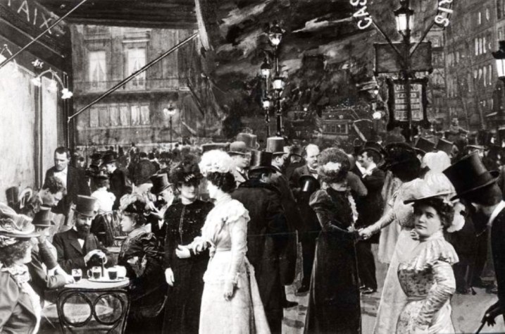 O Café de la Paix por volta de 1900. Este café existe até hoje, na Place de l’Opéra, em frente à Ópera Garnier, teatro de ópera localizado no IX arrondissement de Paris.