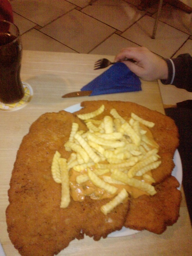Quem estiver em Frankfurt, vale o passeio para conhecer o restaurante que fica a uns 20 km da cidade e que serve frangos de 15 quilos, hambúrgueres com 30 centímetros de diâmetro, Schnitzel (bife de porco empanado) com 2,35 quilos (do tamanho de uma tábua de churrasco)… Mas é preciso fazer reserva, porque o lugar é concorridíssmo!
