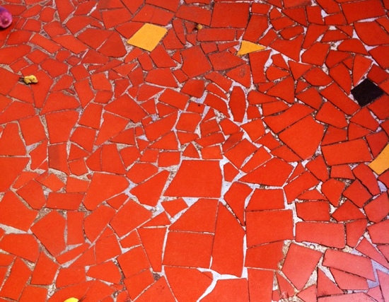 A casa de meus pais tinha o piso do quintal todo feito desses caquinhos de cerâmica. Assim como tantas outras casas de São Paulo, um mosaico vermelho e com algumas manchinhas de cacos pretos e amarelos que cobria a extensão na qual meus irmãos e eu, crianças pequenas, jogávamos bola. Certo dia de calor, resolvemos “nadar” naquele mar vermelho… Misturamos sabão em pó num balde, atiramos essa água ensaboada por cima do piso de caquinhos e fomos fazer “esquibunda”. Como estávamos de shorts, não escorregávamos e alguém teve a brilhante ideia de esquiar sem os shorts!