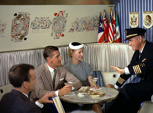 Após a refeição, os passageiros poderiam se reunir de novo no bar, onde conversariam com o capitão, um veterano dos ares com mil histórias para contar.