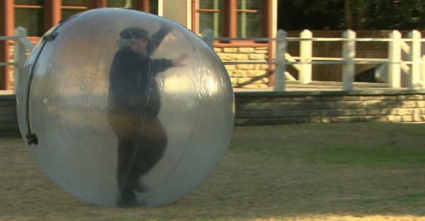 - Ele fica brincando dentro de uma bola gigante…