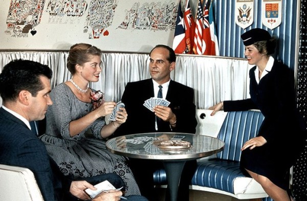 Mesmo que fosse verão, os passageiros usavam os melhores ternos e as mulheres, os melhores vestidos, com luvas e chapéu. A bordo, assim que chegavam, eram servidos uísque escocês ou champanhe para todos os passageiros – mesmo os da classe econômica (que, pelos padrões atuais em termos de preço, equivale à classe executiva). As aeromoças (assim eram chamadas as comissárias de bordo), vestindo uniformes desenhados por famosos estilistas, acendiam as piteiras dos passageiros.
