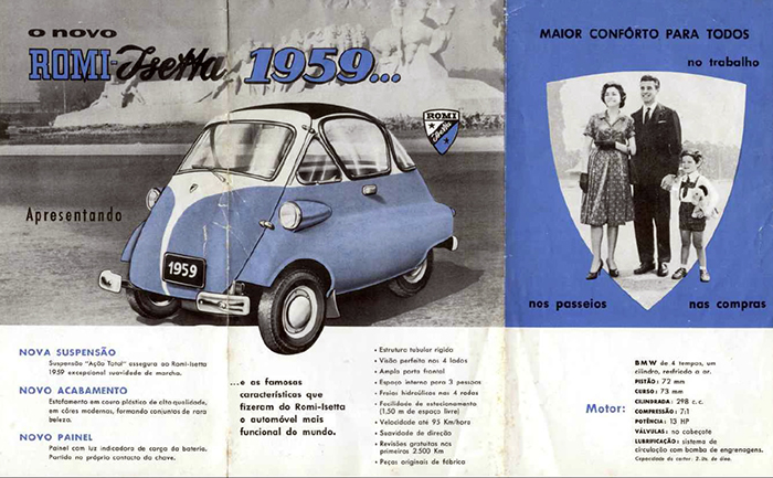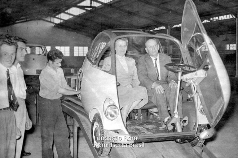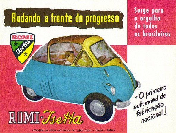 Há 62 anos, dentro de um galpão em Santa Bárbara d’Oeste, no interior paulista, começavam a sair de uma pequena linha de montagem os primeiros exemplares do veículo que inauguraria a produção nacional de automóveis. Quase uma motocicleta coberta (boa parte de sua mecânica tinha origem, mesmo, nas primas de duas rodas), a Romi-Isetta era a versão brasileira do carrinho criado pela fabricante de motos italiana Iso em 1953 e que também era fabricado pela alemã BMW desde 1955. Hoje, a chamaríamos de modelo urbano e racional: era ultracompacta, trazia soluções de engenharia e design revolucionários para época e consumia apenas um litro de gasolina para cada 25 km rodados – com velocidade máxima de 85 km/h.