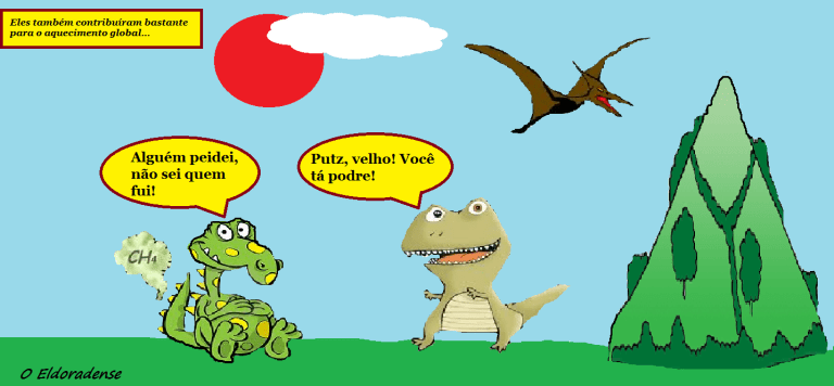 A pesquisa, realizada por um grupo de cientistas de universidades britânicas e publicado na revista Current Biology, calcula que os gigantes dinossauros herbívoros (saurópodes) podiam emitir conjuntamente até 520 milhões de toneladas anuais do gás que provoca o efeito estufa!!!!