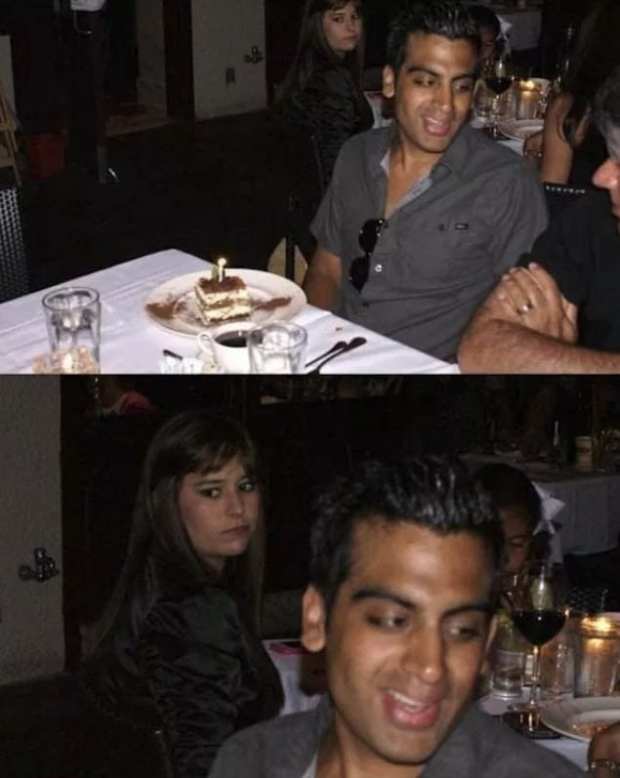 Aquela moça parece ter tomado uma decisão precipitada ao escolher a sobremesa. Ela devia estar se cumprimentando pela opção saudável, e imagine seu desânimo quando o garçom aparece com um grande pedaço de bolo para a mesa ao lado.