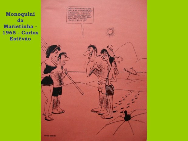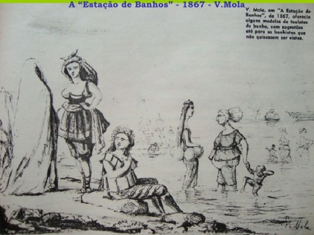 Vestimentas flutuantes para banho e moda estilo marinheiro já foram sucesso na areia…