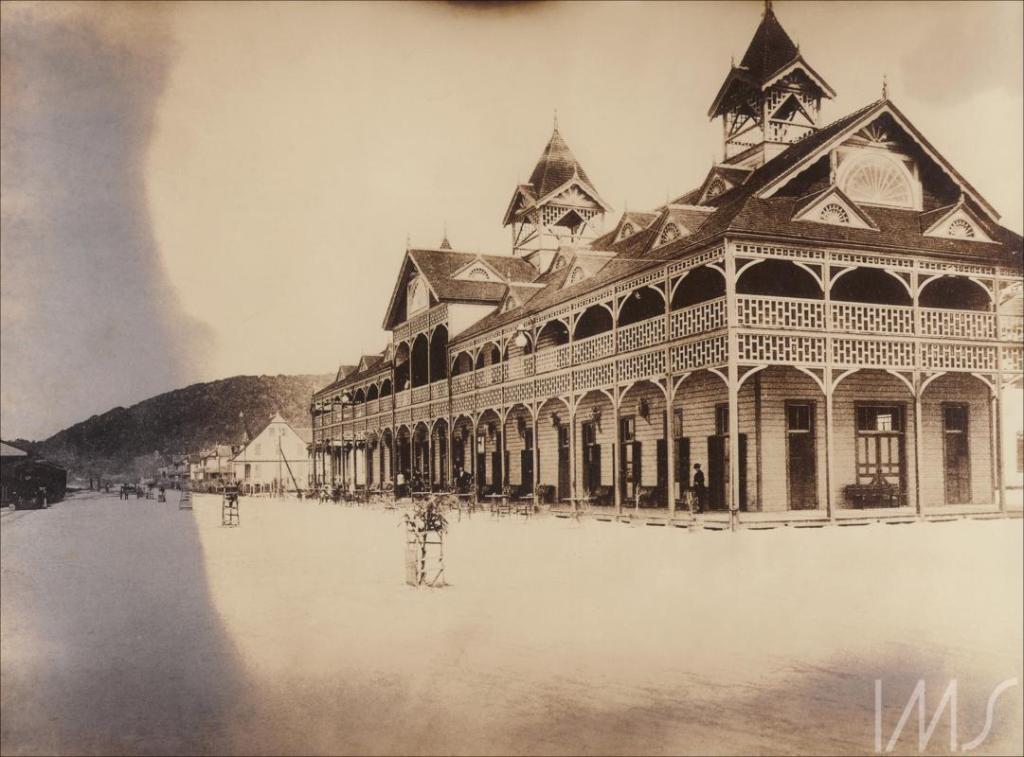 Em 1893 é inaugurado o Hotel Cassino La Plage, que logo se tornou o reduto da alta classe paulistana no verão, um marco no turismo de luxo. Essa sua primeira versão, feita de madeira, durou pouco tempo, tendo sido destruída por um incêndio de grandes proporções quatro anos depois. O hotel foi reconstruído e reinaugurado em 1898, já de alvenaria e com dois andares, buscando se igualar aos hotéis europeus da época.