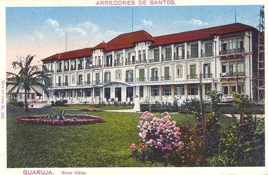 Durante muito tempo – principalmente no início do século – o hotel, o cassino e os chalés, constituíam uma atração maior do que as próprias condições balneárias da cidade. O jogo rivalizava com o banho de mar, que, para a maior parte daqueles sizudos senhores, constituia apenas uma recomendação médica. Os mais jovens, porém, sabiam apreciar o mar e eram assíduos frequentadores das cabines de troca de roupa instaladas nas imediações do hotel e na faixa de areia da praia. Entrar na água era uma operação feita com muitos cuidados. Além da areia, do sol e do mar, compunham a paisagem cordas presas a madeiras, às quais as pessoas se agarravam prevenindo-se contra os possíveis maus humores das ondas.– Do livro “Pérola ao Sol, apontamentos para uma história do Guarujá” de Mônica de Barros Damasceno e Paulo Mota.